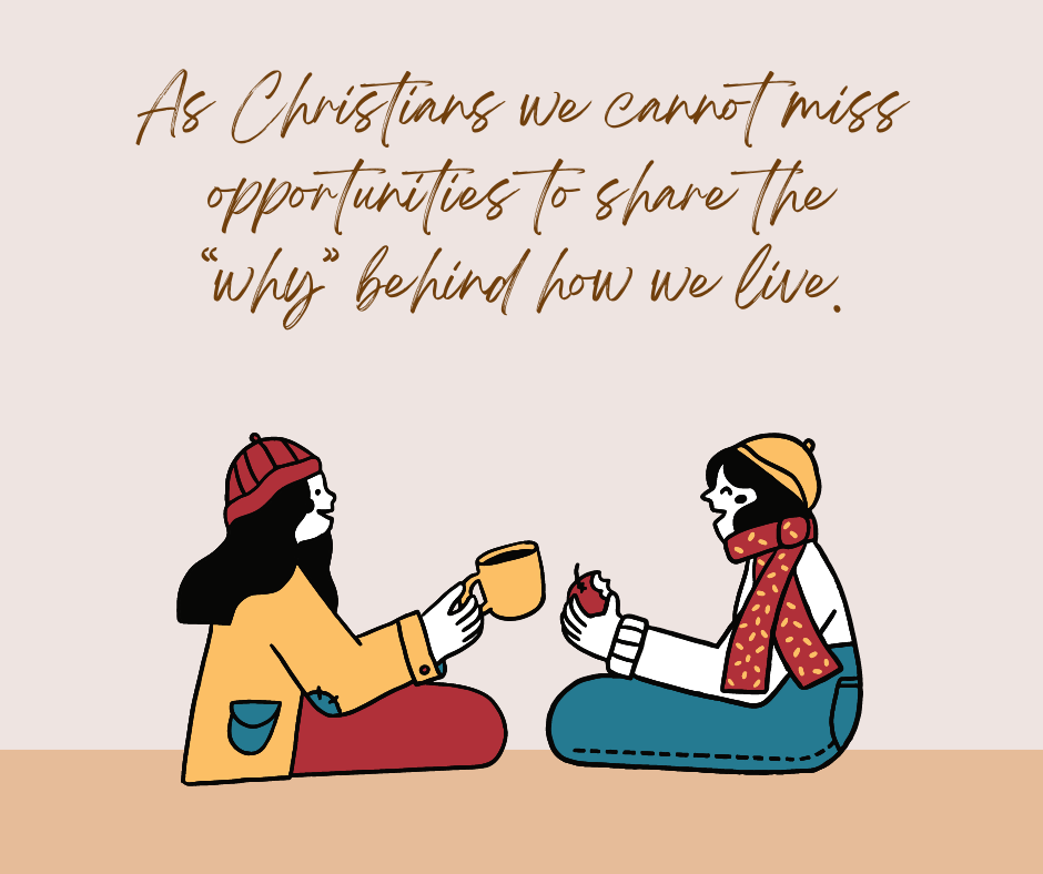 As Christians, when we go through the motions without explanation, our lives can become a ritual or religion and the relationship is lost. It is our responsibility to take the time for these “defining moments” where we can explain the reason behind the ritual. I am as guilty as anyone of not taking the time to sit down and explain the true meaning behind things or taking advantage of those teaching moments. Don’t assume that others will understand the importance of why you do what you do. Throughout the Old Testament, it is commanded over and over again, whether during the Passover, the 12 stones, or the instructions in Deuteronomy, that parents are responsible for providing the knowledge and reasoning behind the rituals. Take advantage of that next moment and make conversation intentional regarding your faith.